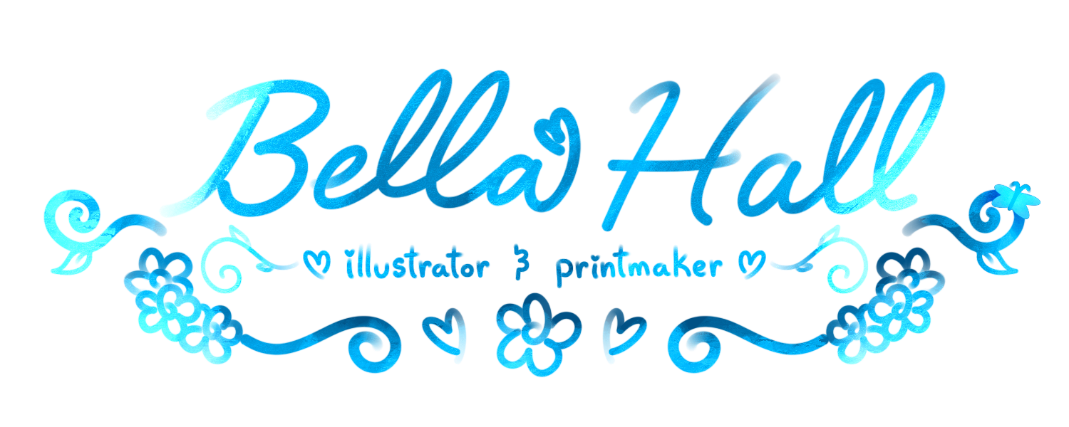 Bella Hall is an illustrator & printmaker based in the Twin Cities, Minnesota. She is in her last semester at Minneapolis College of Art & Design (MCAD), earning her BFA in Illustration in May of 2026. She mainly draws feminine figures, animals, and happy moments but loves expanding her creative knowledge and trying new materials and drawing subjects.